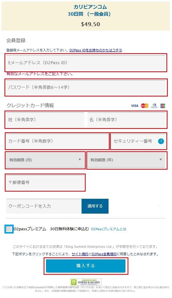 ※青色の枠で囲った部分の「D2Passプレミアム」は